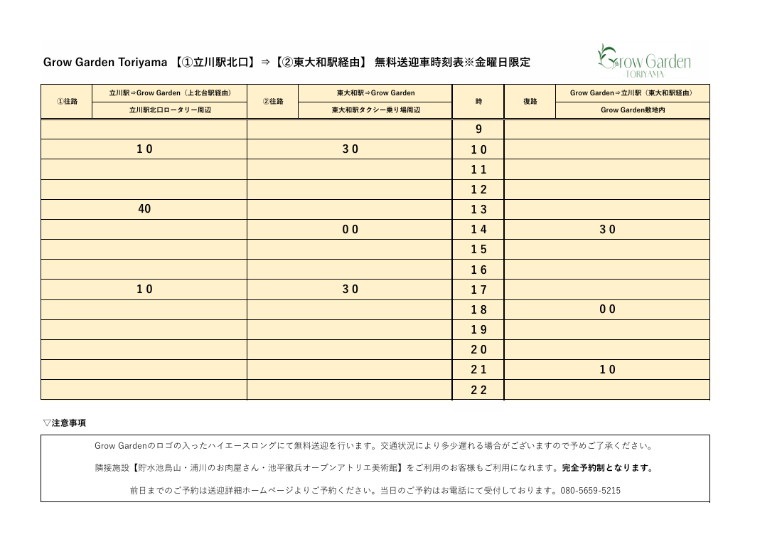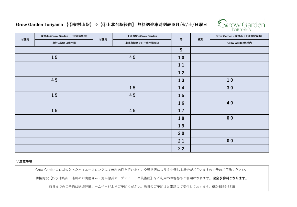 ※2026年5月以降より、送迎のご予約はGrowGarden Toriyamaをご利用のお客様のみとさせていただきます